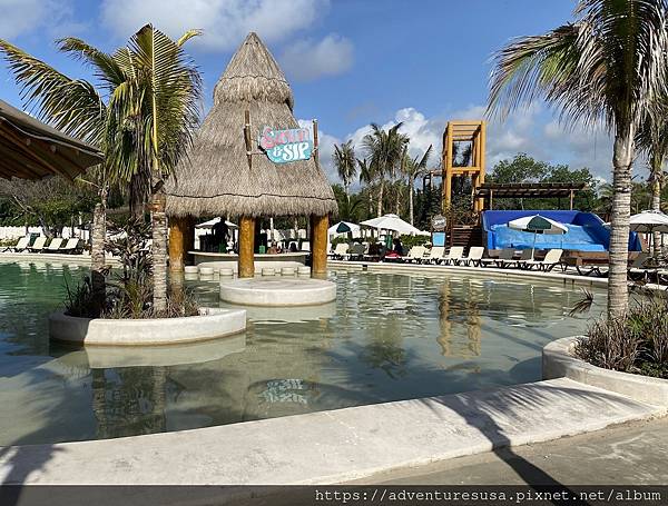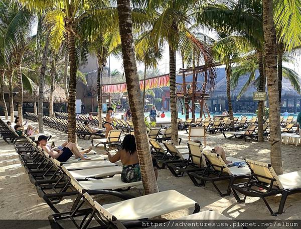 水池四周是酒吧有躺椅。當然要先付租金才有資格享用躺椅。