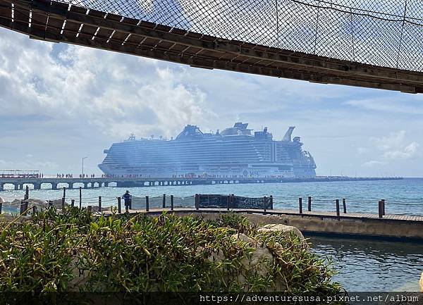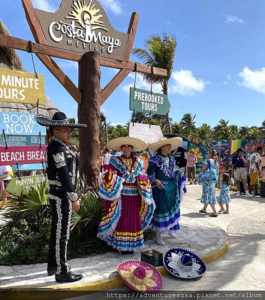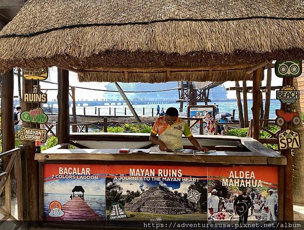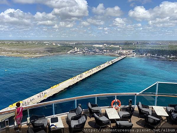 郵輪抵達墨西哥東部猶加敦半島的 Costa Maya。乘客下船後就沿著那條長長的走道進入 Costa Maya。