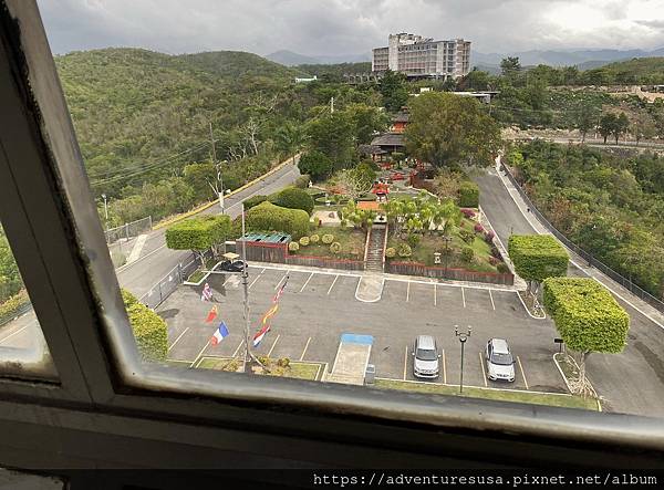 從窗戶可以看到日本庭院就在旁邊, 只隔一座停車場。