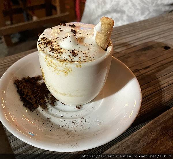 餐廳在門口擺了很多桌椅, 旁邊也有吧檯, 加上天氣舒適, 所有人都座在外面喝酒用餐, 氣氛舒適隨興。