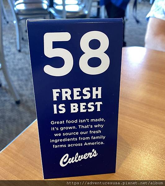 Culver's 賣甚麼呢? 主要是漢堡和各種雞肉魚肉三明治, 以及薯條、洋蔥圈、炸起司塊等配菜。阿甘曾提過威斯康辛州是美國第一名起司產地, Culver's 的菜單上有炸起司塊不讓人意外。
