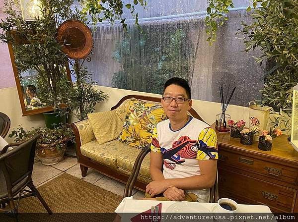 走到底出來是個陽台, 可以選擇在這裡用餐, 空間稍大些。陽台搭建了棚子, 還布置花花草草, 氣氛不錯。