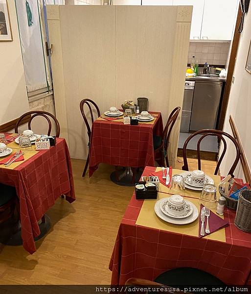 旅館一樓有餐廳提供義大利午晚餐, 我們沒有時間嘗試。