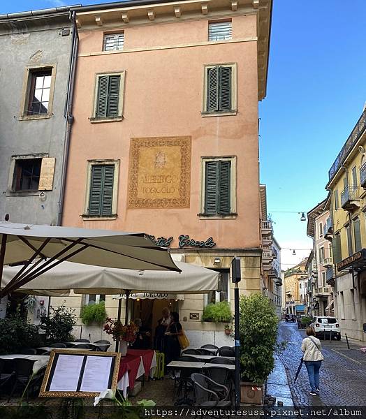 這是我們在義大利東北部城市維洛納 (Verona) 的住宿地點。很難得我們沒有入住知名連鎖飯店, 選擇這一家因為地點太好了, 就在市中心。